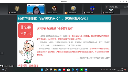 最后,采购管理专业学生第一、二党支部向同学们介绍了关于学生如何做好自身防控方面的注意事项,并强调希望大家能够在特殊的时期理解和配合,认识到校园疫情防控从严从紧的特殊性和重要性。努力克服由于疫情带来的学习、生活上的困难,杜绝厌倦情绪和懈怠心理,充分发挥学生自我教育、自我管理、自我服务作用,保证线上于线下相结合教学的高质量完成,呼吁大家坚持健康打卡、三天一检核酸并按期接种疫苗。