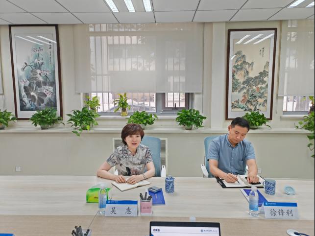 姜旭院长利用课件就学院整体工作情况、教学工作、科研工作、学科工作、合作交流、学生工作、文化思政和党建工作八个方面向吴惠书记进行了综合汇报,汇报以数据为重点展示,全面分析了当前学院面临的机遇与挑战,无论是师资结构还是学生结构,亦或是未来发展空间,均较为形象地展示在课件中。