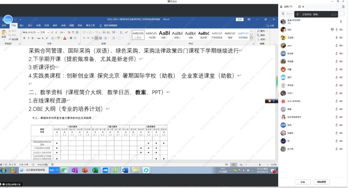 采购管理专业通过腾讯会议方式组织了2022-2023学年第二学期期末工作总结会。会议由采购管理系主任王燕妮主持,专业全体教师参会。