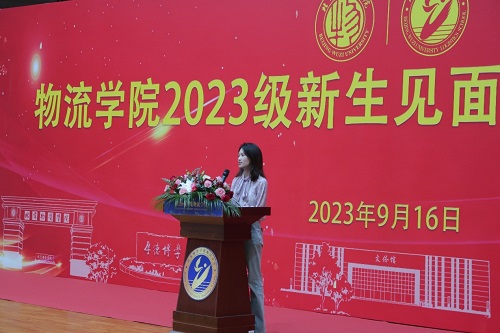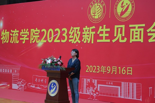 物流管理专业教研室主任段倩倩老师向新生们介绍了物流管理专业发展现状和近年来取得的成绩,详细地阐述了物流管理专业的课程设计及培养方式。