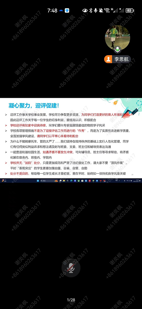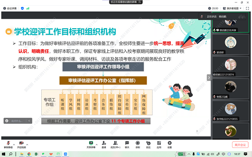 接着,各党支部书记介绍了学校迎评工作安排。各党支部书记要求全体学生进一步统一思想、提高认识、明确责任,在专家线上评估和入校考察期间展现良好的教学秩序和校风学风,做好专家听课、调阅材料、访谈及各项考察走访的服务配合工作。学校各部门也将按照分工安排各司其职、各负其责,形成迎评合力。