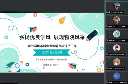 各学生党支部先后以线上线下方式开展本科教育教学审核评估迎评动员“大思政课”宣讲教育活动。活动由各学生党支部书记(纵向管理辅导员)主讲,全体班主任、党支部纵向管理的全体本科生和研究生参加活动。