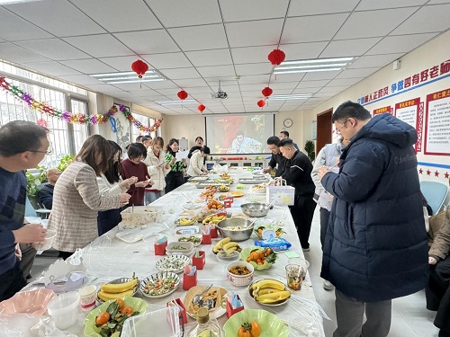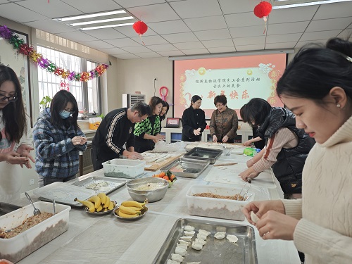 的教职工们迎来了下一个富有传统意义的环节——“包饺子”活动。在这个充满欢声笑语的氛围中,每个人都被分配到了特定的任务:有的和面,有的调馅,有的专心包饺子。整个办公室在这一刻变成了一个充满活力和欢乐的小型饺子工坊。随着每个人的共同努力,一碟碟形状各异、馅料丰富的饺子逐渐成形。这些饺子,有的圆润饱满,有的别致独特,每一个都承载着大家的心血和创意。