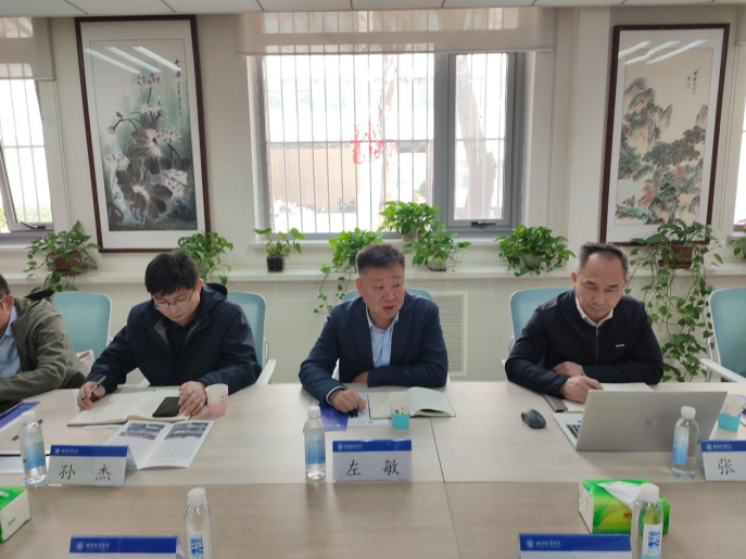 的历史沿革、专业建设、科研工作、学科建设、对外合作交流等工作,党委书记郝庆、副院长芮嘉明、副院长刘若阳、副书记孙涛参加了汇报。