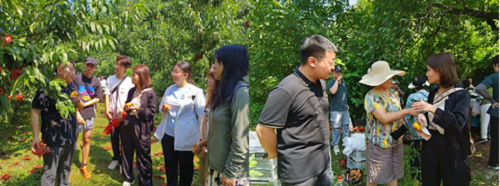 活动中,物院学子亦是志愿者,深入田间地头,把课堂学习和乡村实践紧密结合起来。校友凡皓指出要充分了解梯子峪村目前在农产品种植与销售方面所面临的困境,就要对梯子峪村产业链发展和规模化种植等问题进行讨论,并对此提出合理化建议。于是实践团队在凡皓的带领下,来到色情网产学研合作基地,深入果园,了解蟠桃的生长状況,切身体会采摘场景;参观梯子峪村农产品仓储、冷链物流等配套设施,亲身体验蟠桃的分拣打包过程
