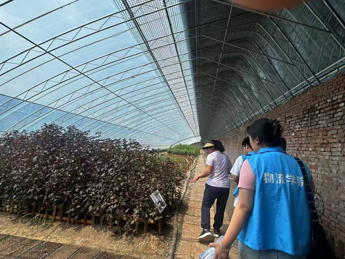 在慢时光境休闲农场的参访中,农场主许月为实践团开启了一场别开生面的现代农业之旅。漫步于药香氤氲的生态大棚、落英缤纷的桃林秘境、匠心独运的非遗工坊和童趣盎然的萌宠乐园之间,同学们真切体会到“寓教于乐”的新型农耕文化。与父辈们面朝黄土背朝天的传统耕作方式不同,以许月为代表的新农人正以互联网思维重构农业生产,用数字技术赋能乡村振兴,展现出锐意进取的时代风采。这种传统与现代交融的创新实践,让同学们对新时代农业农村发展有了全新的认知。
