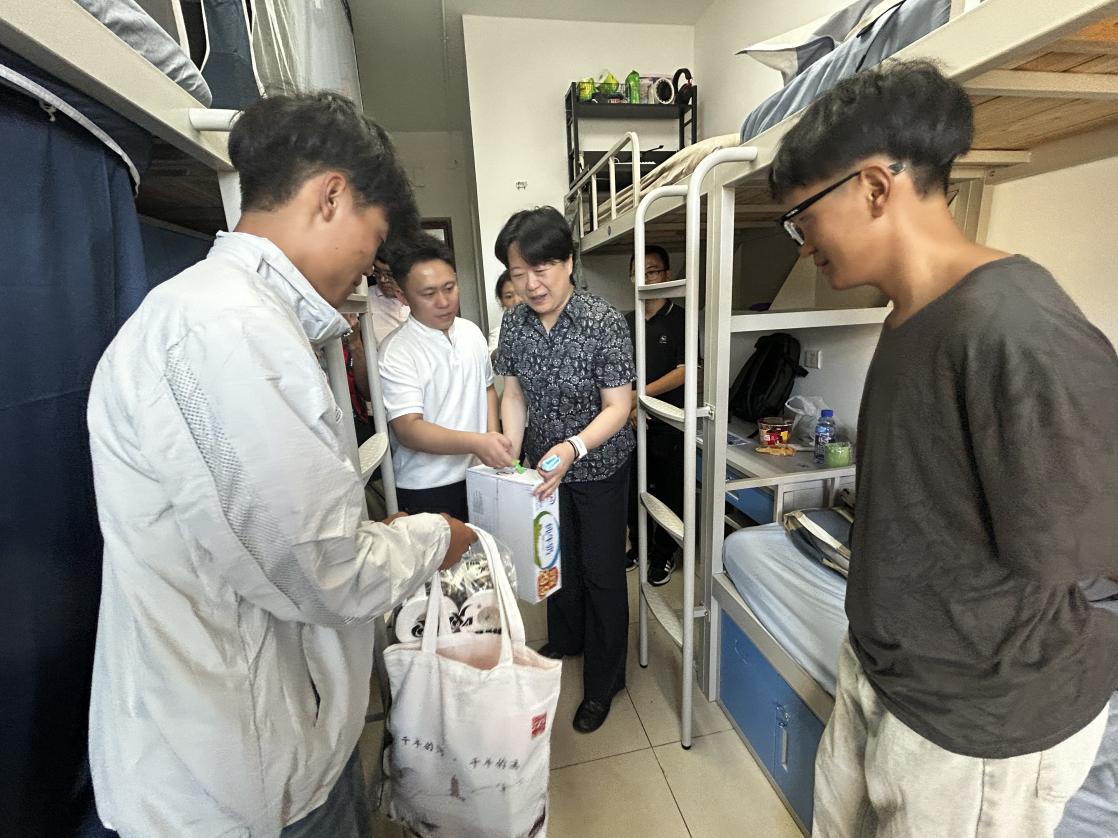 党委书记郝庆、院长姜旭、党委副书记孙涛、副院长刘若阳、副院长褚东亮对迎新工作高度重视,与新生亲切交谈,仔细询问同学们对校园的初印象及对大学生活的期待,认真督导材料审核、志愿服务和后勤保障等各个环节。学院领导班子集体走访新生宿舍,查看住宿环境,倾听新生需求,用实际行动让新生感受到学院的关怀与温度。