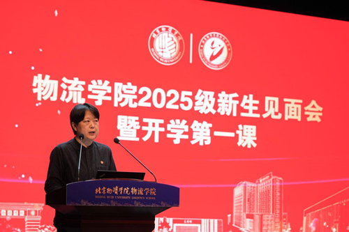 而立向新:新时代 新物流 新征程》中拉开帷幕。宣传片生动展示了学院的发展历程、学科建设成果、师资队伍力量、人才培养实效及国际化办学特色,生动呈现了物流在国家战略需求中的重要作用,有效激发了新生专业自豪感,为新生勾勒出物流专业的广阔前景。随后,学院党委书记郝庆代表学院致辞,她向新生表达热烈欢迎,并强调学院将始终秉持“为党育人、为国育才”使命初心,希望同学们传承物流先驱的实干精神,肩负“货畅其流”的时代使命,赓续“刚毅坚卓、厚德载物”的院训精神,将个人理想融入国家发展大局,在服务物流强国建设的实践中书写青春华章。