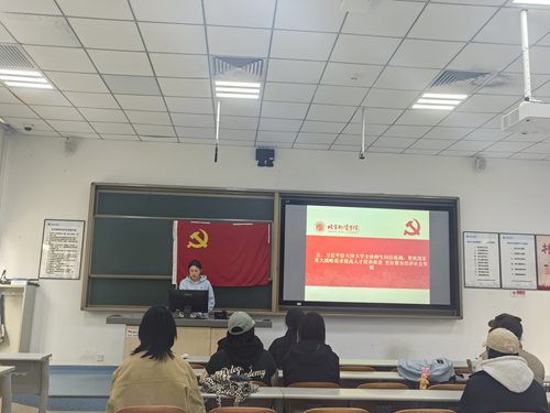 各学生党支部组织开展了10月主题党日理论学习活动。本次理论学习围绕深入学习贯彻习近平新时代中国特色社会主义思想,聚焦“铸牢中华民族共同体意识、扎实推进中国式现代化建设、强化高素质人才支撑”等重要内容展开,学习了习近平总书记在庆祝中华人民共和国成立 76 周年招待会上的讲话、如何纵深推进全国统一大市场建设 、系统推进我国宗教中国化,积极引导宗教与社会主义社会相适应等重要内容。此次党课由各学生党支部书记主讲,全体学生党员参加学习。