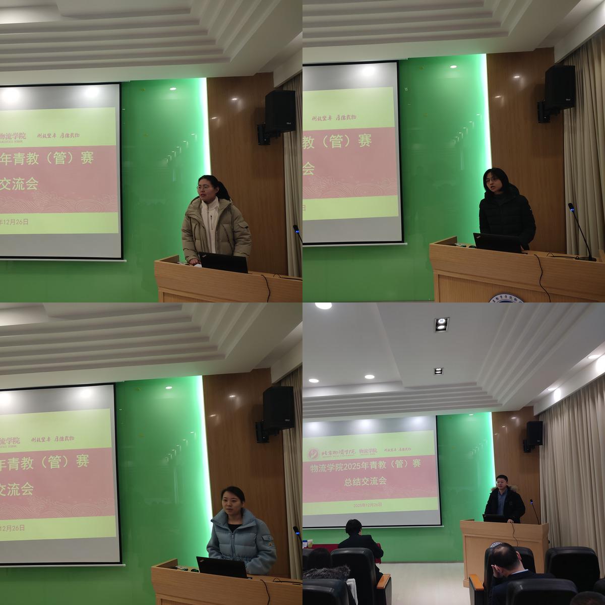 随后,青教(管)赛获奖代表解晓灵、张莉、张玥分别从备赛的心路历程、方法技巧及参赛收获等方面进行了经验分享交流,通过比赛,对于青年教师的教学水平、管理岗位干部的素质提升起到了巨大的促进作用,既看到了自身的成长进步,同时也认识到了差距,为下一步的努力找准了方向。新入职教师代表成润坤在发言中表示将会以获奖教师为榜样,积极参加青教赛等各类赛事活动,不断提升自身教学能力水平,为学院整体教学水平提升贡献力量。