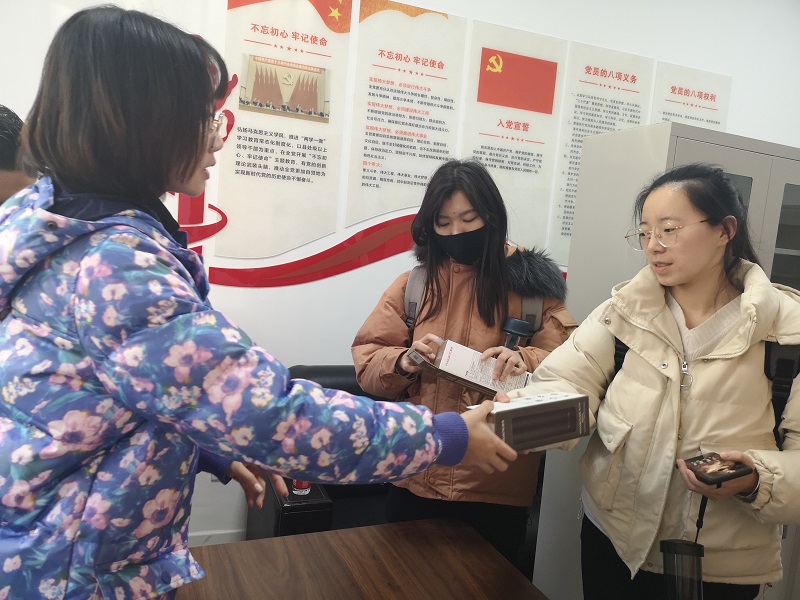 分团委学生干部代表学院师生向献血的同学赠送了保温杯,送去了冬日里的一份温暖和关怀。