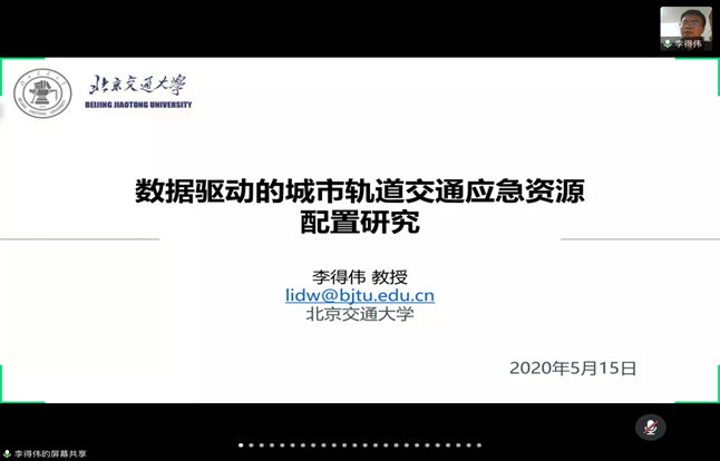 以腾讯会议的方式,举办了线上“物流名家讲堂”(春)系列第二讲,主题为《数据驱动的城市轨道交通应急资源配置研究》的讲座。