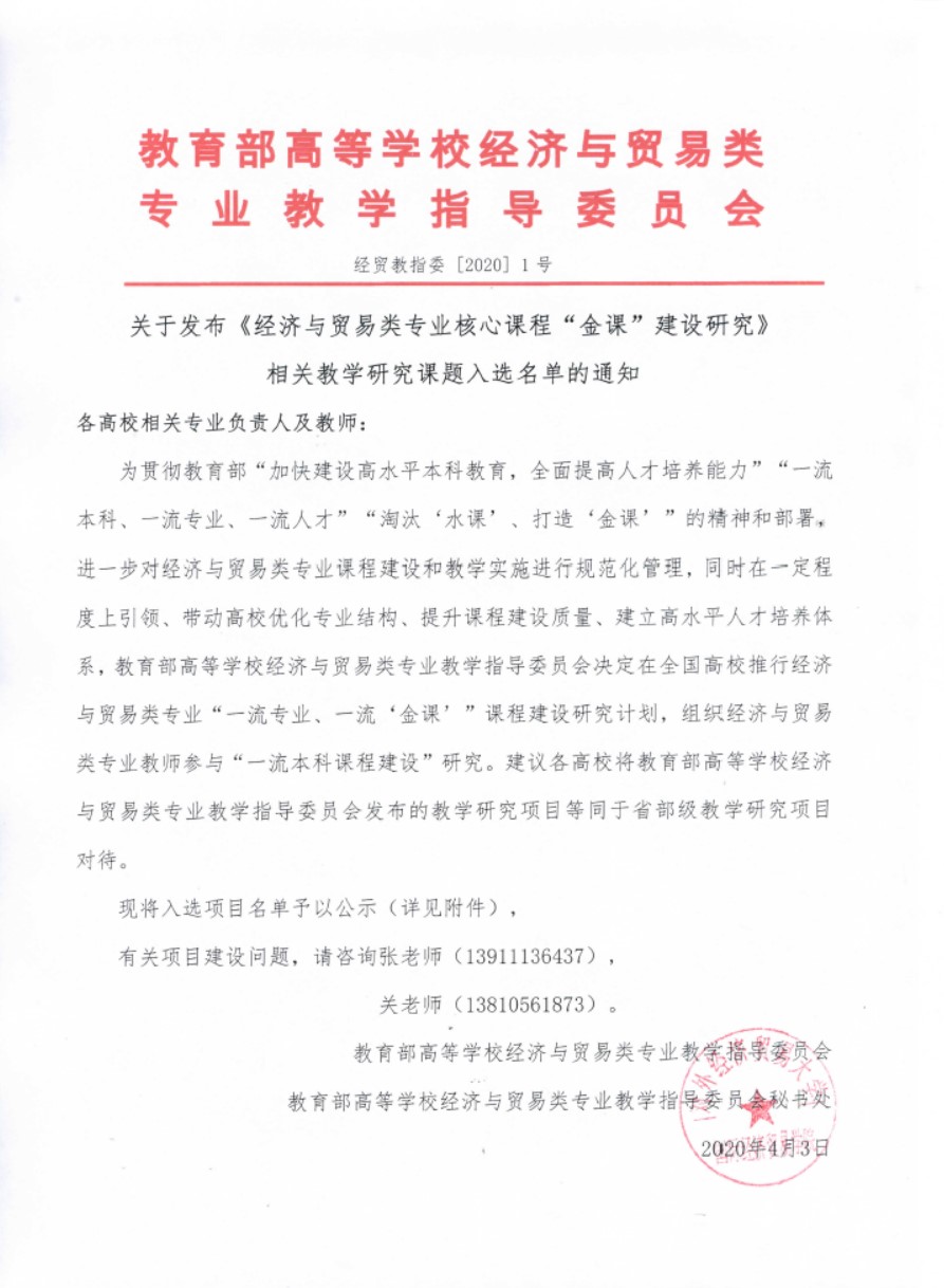 近日,教育部高等学校经济与贸易类专业教学指导委员会关于“经济与贸易类专业核心课程‘金课’建设研究”课题评审结果公布,色情网色情网