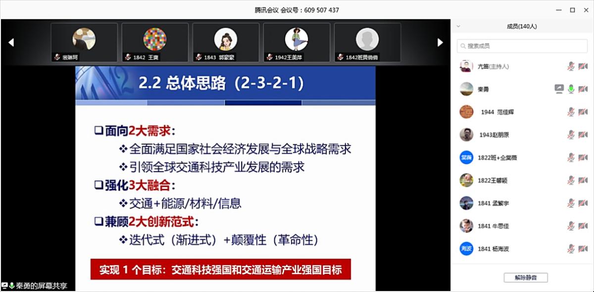 2020年4月29日下午14:00,以腾讯会议的方式,举办了线上“物流名家讲堂”(春)系列第一讲,主题为《铁路科技创新中长期发展规划与实践》的讲座。