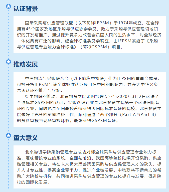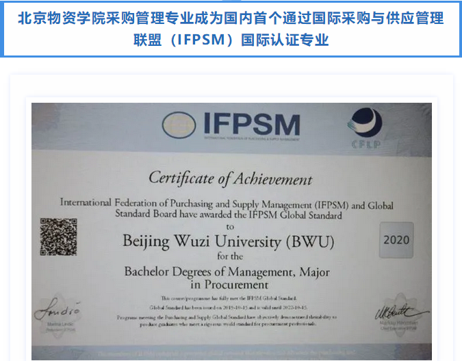 北京物资学院采购管理专业成为国内首个通过国际采购与供应管理联盟(IFPSM)国际认证专业