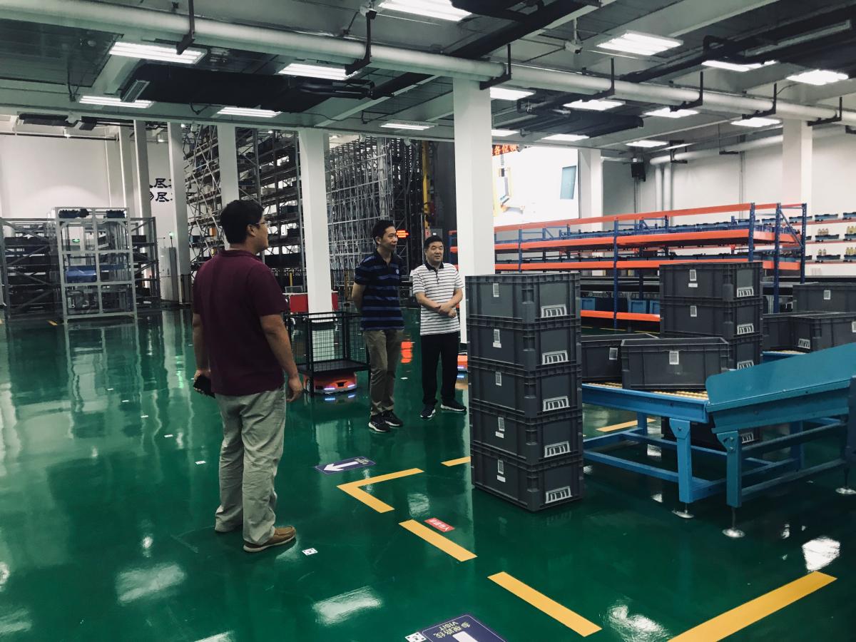 安久意老师首先对国家级物流示范中心的概况作了简单介绍。然后刘万云教授在示范中心相关工作人员的陪同下对一层相关物流设备进行参观,随后是物流规划仿真计算中心实验室、VR/AR实验室、智慧供应链协同创新实验室的参观。刘万云教授一行两人对国家级物流示范中心内的各物流系统和设备与安老师进行了深度交流,并给予示范中心高度赞赏。
