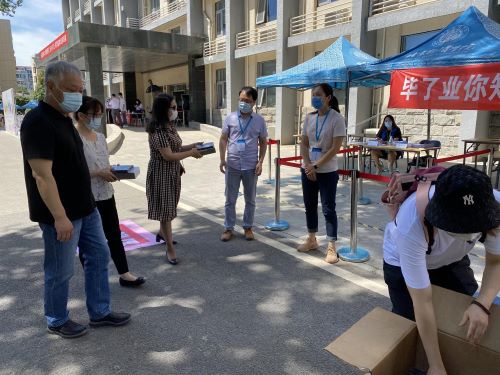 当天上午,校党委副书记宋晓欣、校工会主席傅强特来探望迎接毕业生返校的老师与同学们,宋晓欣副书记与辅导员细致交流毕业生就业情况与返校工作开展情况,与返校毕业生亲切交谈特殊时期返校感受。天气炎热,校领导关切辛勤工作的老师与同学们,为大家“送清凉”,送上电扇、冰袖清凉大礼包,还为大家发放冰棍、矿泉水等福利,全体同志振奋精神,对返校工作的开展更加有信心,保证圆满完成迎接毕业生返校任务。