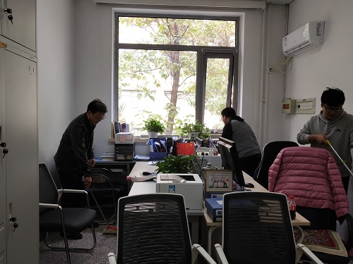 在活动中,教师党员与学生党员一起撸起袖子,干劲十足,用手中的扫把、笤帚、抹布开始了办公环境的全面卫生清扫和安全检查工作,用实际行动营造出安全、干净、整洁的工作环境和学习环境,党员们都以认真积极的态度对待此次活动,大家不放过任何一个死角,经过一个多小时的努力,学院的办公环境和学习环境焕然一新。