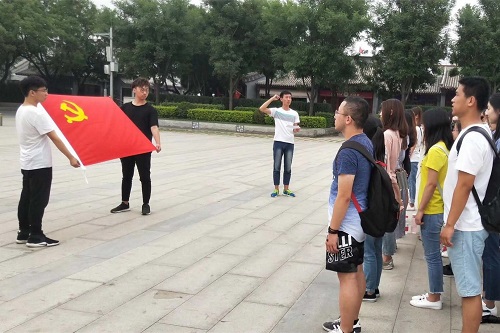此次展览以卢沟桥事变为开端,分为八个部分,详细地展现了日侵华战争日军的种种暴行和中华人民奋起反抗争取民族独立的壮举。在参观的过程中,同学们感受了当面对外来侵略时,中华民族一致抵御外敌的团结精神。在中国共产党的领导下,全国同胞共同奋起抗敌,保卫国土。整个中华民族空前的团结精神,形成了真正战胜侵略者的无坚不摧的力量。跟随着讲解人的介绍,同学们认真记录并学习。部分同学在参观之余,自行拍照浏览历史和战争遗迹等。随后,在纪念馆广场上,在党旗面前,所有参观者进行了庄严的宣誓及佩戴党徽仪式,并集体合影留念。