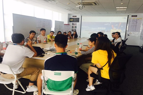 学长及其同事向学生党员们讲述了宝尊电商的发展历程和其以物流为主的运营模式及与各个电商之间的竞争与合作关系,学生党员们用心聆听不时提出一些有关物流行业的问题。