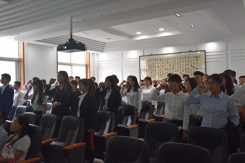 大会开始,全体起立,国际歌在每个人的耳边响起。随后进行庄严的宣誓,每个人的脸上都带着严肃的表情,感受着自己肩上承担的重任。