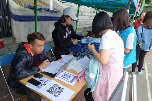 活动开始,志愿者们在学校南门、篮球场门口有序迎接新生。积极地按照报道流程带领新生办理入学手续,领取相关材料。此次迎新活动还增加了中美物流班和研究生部,大家都投入了百分之百精力与热情为新生服务,做好表率。