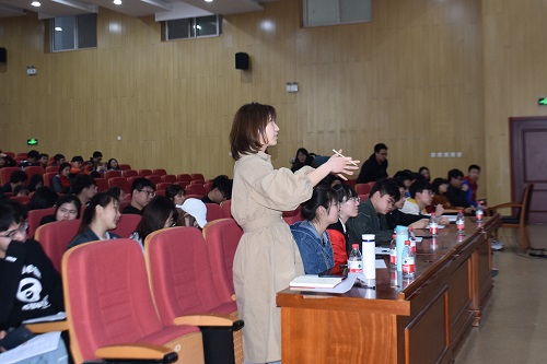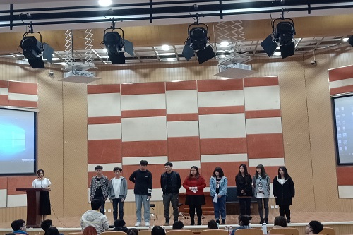 最后大赛以李思奇老师的讲话结束,希望同学们能够契合主题来表现话剧的无限魅力,也借此契机,以剧会友,以声共鸣,畅想物院学子的青春梦想。