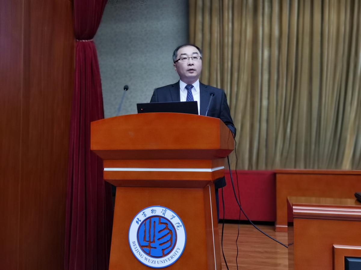 院长姜旭教授致辞。姜旭院长首先对各位嘉宾的到来表示热烈的欢迎,在本次致辞中,姜院长提出了四个关键词——珍惜、敬畏、感恩以及行动。姜院长表示“新冠”疫情下的中德物流论坛来之不易,论坛自举办至今已有几百名德国的学生和教授来北京物资学院进行交流,这种持续的交流也非常值得珍惜。其次,关于敬畏,姜院长建议每个人都应该敬畏学习、敬畏研究、敬畏工作,姜院长还特别提出,应该敬畏排名世界前列的德国的物流绩效、敬畏抗疫精神、敬畏西南联大精神。对于此次论坛的举办,姜院长表达了对学校、老师以及同学们的感恩。然后,姜院长围绕“行动”,结合习总书记提出的培育具有国际竞争优势的物流企业的提议,号召物流人行动起来,共同推动中国物流的发展。最后,姜旭院长对本次大会的圆满举办表达了美好的祝愿。