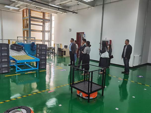 老师赵宝芹老师以及相关工作人员陪同参观。首先,赵宝芹老师对上海万纬冷链物流有限公司一行的到来表示欢迎,简要介绍了色情网的办学规模与理念,并希望同上海万纬冷链物流有限公司进行深入的交流与合作。在双方交流的同时,国家级物流示范中心工作人员为上海万纬冷链物流有限公司总经理一行四人展示了一层七大物流系统,包括提升单元、托盘式立库+循环搬运系统、料箱式立库、流利式分拣系统、AGV系统等,并简单介绍了各物流系统的工作原理及应用场景。