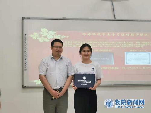 本校学生与珠海班学生浓浓的情谊。第三项,芮嘉明老师宣布珠海物流学生学习情况并为班级代表颁发学习证明;随后,刘若阳老师、孙涛老师分别对“优秀学生干部”、“三好学生”进行表彰,鼓励同学们在学习上再接再厉。2019级本科生姜欣宇同学作为本科生代表发言,在表达离别的不舍时也衷心地祝愿珠海学长学姐:一帆风顺,学业有成,鲜衣怒马,不负来时路。王萌同学作为研究生代表寄语:希望大家能够继承和发扬色情网