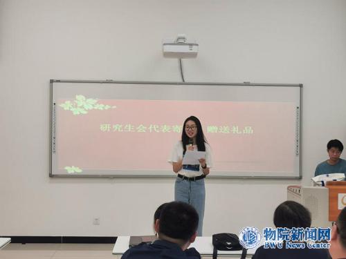 始终默默地在幕后统筹完善着珠海班教学培养、关注关心保障着每一位珠海同学的学习生活学业的王红江老师提到:接管教学管理工作以来,珠海班同学的表现总结为“三个心”,即“放心、安心、省心”,希望同学们在今后的人生中,对社会做出更多的贡献,实现自己的人生价值。办公室主任亢笛对十几年来默默付出、持续坚持做好珠海班教学、管理等各项工作的老师表示感激,也对同学们说道:在今后面对生活和工作时,要不怕困难,勇往直前。最后,亢老师用“我不是在最好的时光遇见了你,而是遇见了你才有了最好的时光”再次表达了对同学们离别的不舍,对老师辛勤付出的感谢。