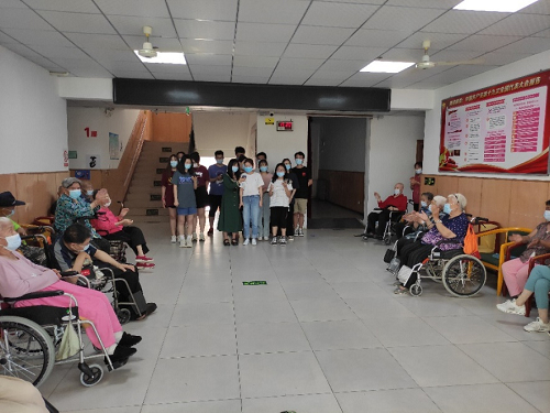 第三项社会实践志愿服务活动于2021年7月2日正式开展,发展对象前往红十字会颐年养老院进行志愿服务活动。此次活动的主要内容是给养老院的爷爷奶奶们表演唱歌、相声节目、和爷爷奶奶聊天等,在党的生日之际给养老院的爷爷奶奶们带去快乐。在活动中,发展对象们合唱了《没有共产党就没有新中国》、《我爱你中国》、和《歌唱祖国》三首红歌,在唱歌时爷爷奶奶也随着歌声鼓掌,气氛其乐融融。随后由尹晨茜和米娜尔两位发展对象表演相声,在节目结束后发展对象们都去和爷爷奶奶们聊天,在欢声笑语中度过了愉快的下午。此次志愿活动发展对象们不仅仅是给爷爷奶奶带去欢乐带去温暖,更是让发展对象们深刻领悟了“全心全意为人民服务”的精神和关爱老人的高尚品德,践行社会主义核心价值观体系。