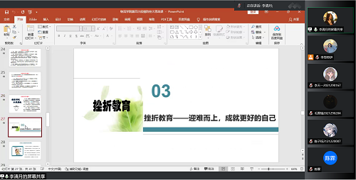 此外,各专业党支部负责辅导员还就大家可能出现的孤独心理、焦虑心理、厌倦心理、自卑心理四种挫折心理以及如何进行自我调适进行了具体介绍,并鼓励同学正视生活中的困难 ,面对挫折迎难而上,提高自身心理承受能力,在不断战胜挫折中提高能力,成就更好的自己。希望同学们以积极乐观地面对挫折心理,努力调适,合理宣泄,如果自身无法消化,也希望同学们能够坦然面对,勇敢寻求校内老师的帮助。