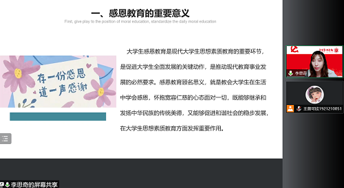 学生党支部通过腾讯会议形式分支部由各专业党支部负责辅导员主讲开展第四次疫情防控“大思政课”宣传教育活动,党支部纵向管理下的各个本科生班、研究生班组全体学生参加了本次宣传教育活动。