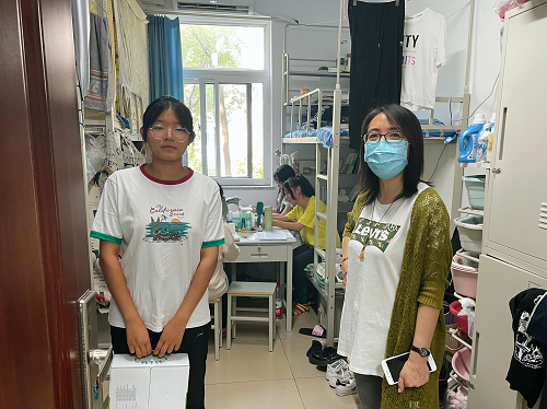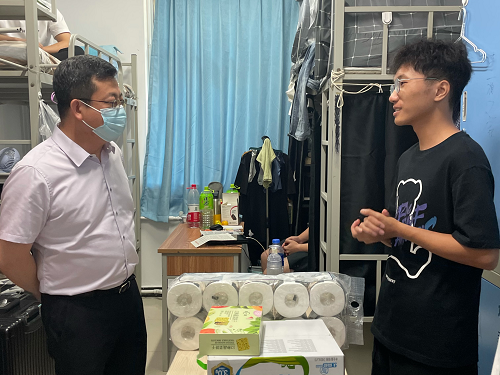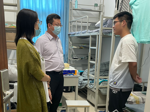 党委书记马立梅关切询问新生们的家乡、入学报到、校园生活等方面情况。此次慰问过程中,马立梅书记在与同学们的亲切交谈中鼓励新生在疫情面前要勇于克服困难、磨练意志、互帮互助、互相包容,共同创造美好的大学校园生活;同时叮嘱同学们要做好疫情期间的防护工作,有特殊情况要及时向学院和老师反映。新生们也向学院领导和老师们表达了感激之情,并表示会努力克服困难,不辜负学校和学院的期待,必将牢记嘱咐、心怀感恩、努力学习,以优异的成绩回报家庭、学校和社会。