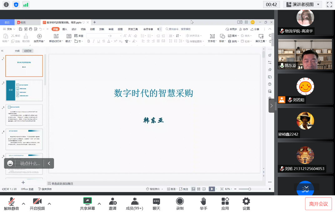 在会议交流环节,学院教师就智慧采购的教学科研发展结合自身工作开展中的问题向韩教授进行请教,韩教授进一步结合相关问题给出了宝贵意见和建议。参会师生一致表示此次讲座收获颇多,受益匪浅!