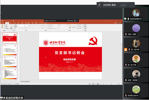 会议最后,王红书记首先根据疫情形势及各项防控要求做出强调,在疫情防控工作中,各党支部应当加强纵向垂直管理,应适度从严从紧做好寒假期间学校疫情防控工作的具体举措,关心关注留校学生及冬奥志愿者集中管理工作,明确寒假疫情防控工作部署,做好各类疫情防控方案预案及突发应急工作部署。同时,王红书记根据物院组通发[2021]12号中共北京物资学院委员会迎接《北京普通高等学校党建和思想政治工作基本标准》检查工作方案要求指出,各党支部应高度重视此次党建评估工作,完善扎实各项基础材料,服从配合各项评估任务,以“以检促改、以检促建”为目标,共同探索有研究、有重点、有深度的党建工作方法,切实抓好基层党建工作,大力提升基层党建工作质量,以党建工作为引领,推动中心工作高质量发展。